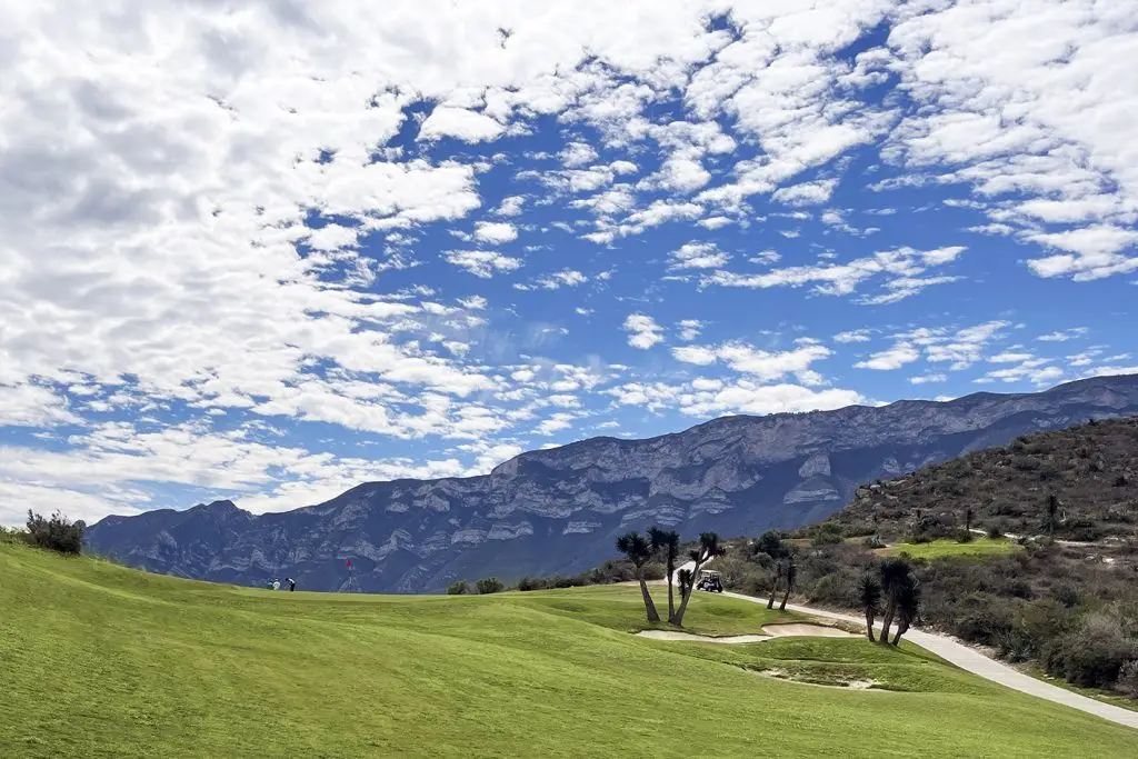 | Yardas | 146 | 304 | 499 | 168 | 342 | 433 | 347 | 313 | 303 | 2855 | 366 | 172 | 513 | 343 | 352 | 281 | 286 | 501 | 131 | 2945 | 5800 |
